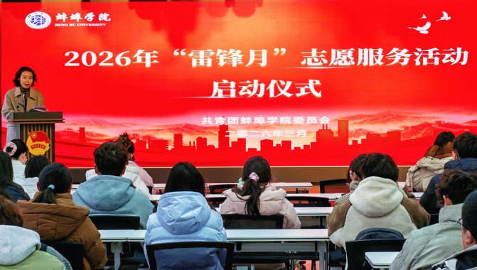 春风送暖,志愿同行。在第63个“学雷锋纪念日”暨第27个“中国青年志愿者服务日”来临之际,为进一步弘扬雷锋精神,推动学雷锋活动常态化、机制化,营造向上向善的良好风尚,3月5日下午,bat365官网举行2026年“雷锋月”志愿服务活动启动仪式。校团委工作人员、二级学院团委书记、各学院志愿者组织骨干成员参加了本次仪式。活动伊始,现场播放了2025年志愿服务活动总结视频,一幕幕暖心的服务画面生动展现了蚌院志愿者的责任与担当,也让...