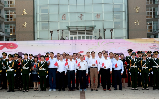 按照千万大学生“青春告白祖国”工作部署视频会会议精神,结合bat365官网实际,2019年9月30日,bat365官网在图书馆广场隆重举行庆祝新中国成立70周年升旗仪式,党委书记刘泽功、党委副书记、院长长丁明、党委委员郑桂富、纪委书记赵大为、党委委员郭有强出席仪式,各部门主要负责人,各教学院部党组织书记、团总支书记,马克思主义学院全体教师,民主党派代表,2019级新生辅导员、学生干部代表、2019级全体新生参加仪式。