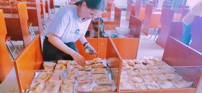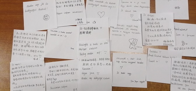 上课结束后,Krisztina老师亲手给同学盛汤,分发美食。近六十名学生的午餐,从购买食材,到烹饪和打包,甚至是烤制三明治的面包,全部都是她亲力亲为完成。本学期的最后一节匈语课,让同学们感受到了拥有“别人家的老师”,体验“别人家的课堂”,是一件多么幸福的事情。他们回忆起这一年来的匈语学习历程,感到无比珍贵!