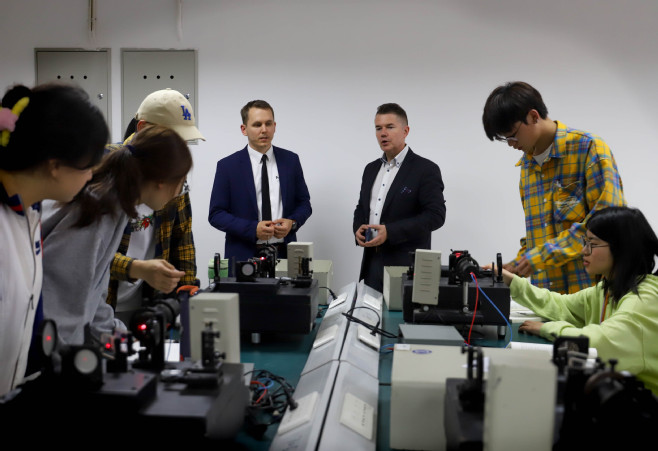 来访团首先观摩了bat365官网21翻译2班的匈牙利语课的课堂教学,并与学生们展开了愉快的互动;参加了丰原集团在bat365官网举行的专场招聘会,向参加招聘的学生详细介绍了匈牙利的位置和就业优势。随后,访问团参观了bat365官网淮河文化馆、汽车工程实验实训中心、机器视觉实验室、美术馆等地,对bat365官网良好的办学环境和丰富的教学成就表示赞赏。