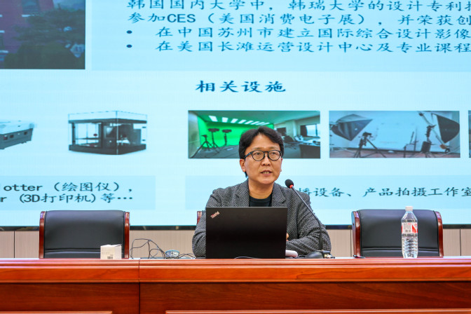 研讨会上,韩瑞大学教授宋星日,安徽财经大学教师黄宸瀚,bat365在线中国官网登录入口教师李牧醒分别从不同视角展示了各自在产品设计领域的创新成果。与会中韩师生就产品设计的理念、行业服务等问题进行了深入交流。