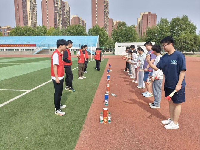 竞赛设置“知识答题”、“雅趣投壶”、“智慧答题”、“活力跳绳”和“终极答题”五大关卡,将知识性与趣味性巧妙融合。其中,“知识答题”、“智慧答题”和“终极答题”,聚焦数学、物理等领域的趣味知识,既考察基础理论掌握度,又考验知识迁移与应用能力。参赛选手沉着应对、机敏思辨,充分展现了扎实的知识储备与逻辑思维能力。“雅趣投壶”和“活力跳绳”环节,则将传统游戏与体能挑战融入竞赛。现场气氛热烈,欢呼声此起彼伏,学生在轻松互动中充分感受到了“数理+体艺”的跨界魅力。