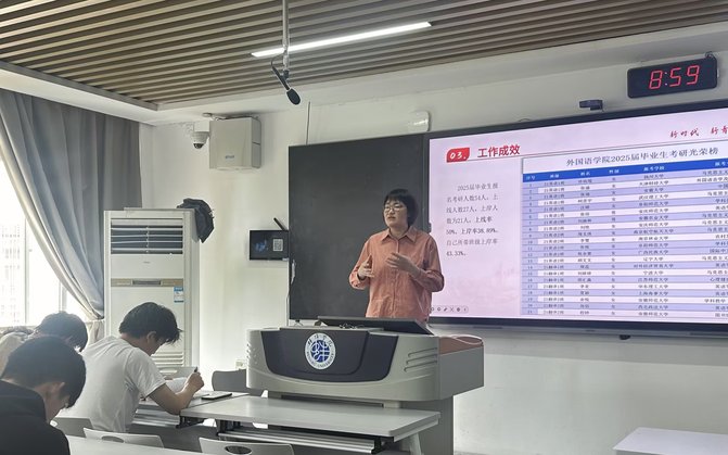 星光不负赶路人,考研逐梦正当时。为进一步推动学院优良学风的建设,充分调动学生的考研积极性,帮助学生们了解考研形势、增强学习信心,外国语学院于4月30日上午8:30在教学楼B407召开“研途有你,未来可期之师者引航”动员交流会。外国语学院院长赵生学、英语专业负责人赵丽莉出席此次讲座,本次讲座由团总支副书记王娜娜主持。
