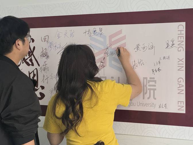 活动尾声,“励志自强·诚信感恩”主题签名海报前人头攒动。同学们手持马克笔,在海报上郑重签下姓名,一笔一划间凝聚着对自我的期许和青春的坚定,也将成为自己践行价值观的精神坐标。