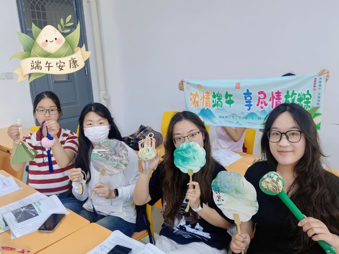 一笔一画,皆是端午情长。24级团支书翁瑾向同学们讲解了古代民间端午节互相赠送扇子的习俗,寓意“一扇解千愁”,让同学们了解更多的端午历史底蕴和文化内涵。随后,同学们学习了绘扇的操作方法,将自己对传统文化的感悟付诸笔端,在一柄柄典雅古朴的团扇上,用清新亮丽的色彩用心绘制外院学子对传统文化、中华瑰宝的热爱。经过上色的彩扇样式精美,充满古色风韵,让同学们爱不释手。制作结束后,大家向同伴分享各自的作品并合影留念。