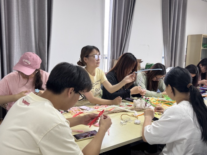 为培养学生耐心与专注力,缓解学习和生活压力,促进学生间互动沟通,营造良好社交氛围、提升心理健康水平,6月3日,外国语学院在F1113教室成功举办“妙手织心,艺韵传情”创意编织手工心理活动。