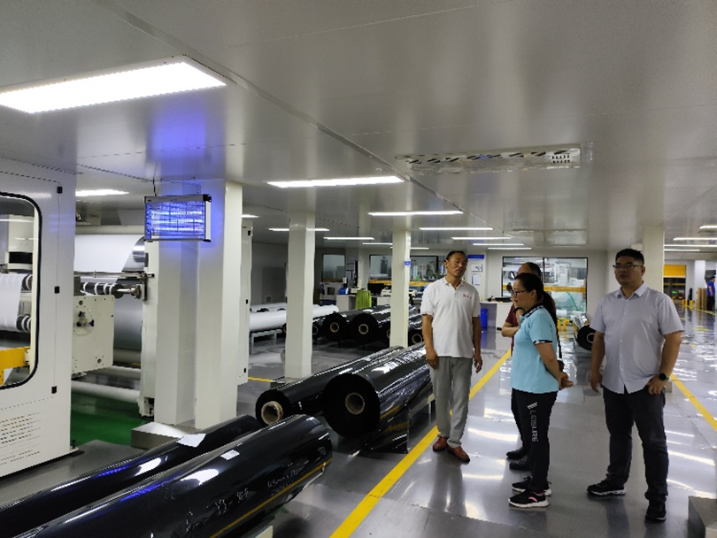 安徽光太新材料科技股份有限公司是一家专注研发、生产高端功能性涂层材料和离型膜、新能源电池膜等高分子材料的行业标杆生产商。公司行政总监马铁成对王传虎一行表示热烈欢迎,双方围绕离型膜、新能源电池膜等高分子材料研发,以及校企协同育人等议题展开深入探讨。王传虎就学院的基本情况和发展愿景进行了介绍,强调了学院在材料与化学工程领域的科研实力及人才培养的特色,通过校企合作充分发挥高校科研优势与企业实践平台的作用,实现“基础研究—技术开发—成果转化”的全链条协同,双方可通过共建联合实验室、联合申报科研项目等途径开展校企合作,加速技术攻关,推动企业技术创新与产业升级。马铁成介绍了安徽光太新材料科技股份有限公司的发展历程、企业文化、在离型膜、新能源电池膜的创新实践,表示希望与学院建立长期的合作关系,共同推动行业的发展。随后,马铁成陪同王传虎一行实地考察了产品生产线,深入交流技术需求。