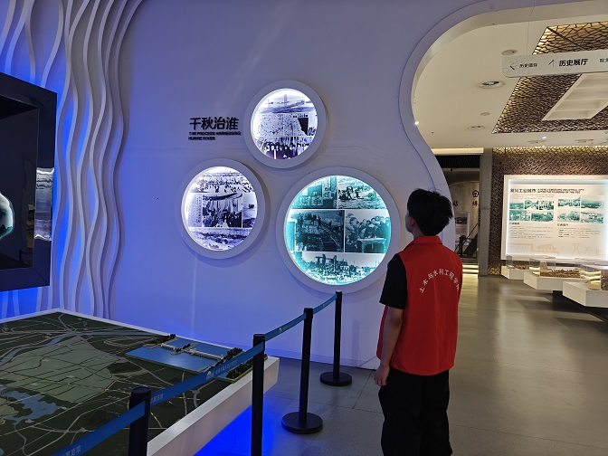 为探寻水利技术在农业发展中的演变脉络,6月27日团队首先来到了蚌埠城乡规划馆。通过水车、筒车等传统灌溉工具与现代电动水泵的对比,队员们感受到了水利技术的演进。在“乡村水利成就展区”,沙盘与模型展示了农村防洪排涝、水资源调配及节水灌溉等成果,系统呈现了乡村振兴背景下农业基础设施的智能化发展,为后续田间调研提供了宏观视角。为进一步了解当地农业发展的实际状况,6月28日,团队走进蚌埠市博物馆。在历史展区,古代农耕工具展现了农业文明的演变;近现代展区则通过老照片、文献和街景模型,还原了蚌埠城市的发展历程。队员们深刻体会到农业在城市发展中的基础作用,感受到历史与现实的交汇。