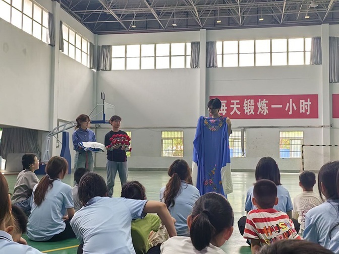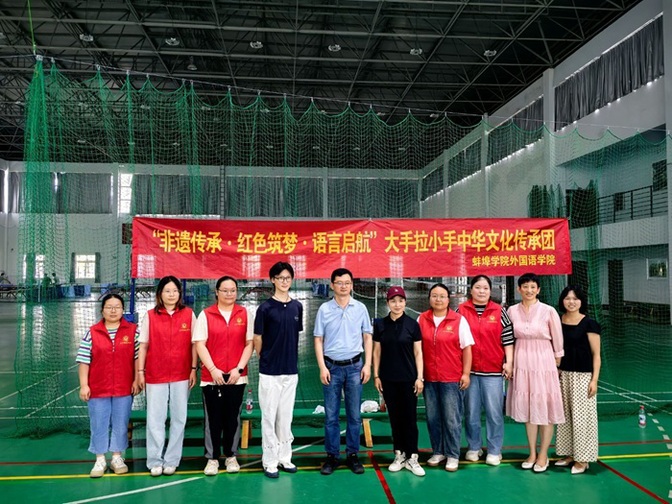 为深入贯彻习近平总书记关于非物质文化遗产保护的重要指示精神,推动中华优秀传统文化创造性转化、创新性发展,6月27日,bat365在线中国官网登录入口外国语学院与龙湖春天社区校地联动,组织bat365在线中国官网登录入口校级重点团队“大手拉小手”中华文化传承团暑期“三下乡”社会实践,与学海路学校二年级学生共同开展“活态传承·青春接力”非遗文化体验活动。外国语学院党委书记夏春晓参加活动。活动在实践团指导教师徐善文、王娜娜的全程指导下,由团队负责人陈诗雯统筹实施,通过五禽戏研习与泗州戏展演,构建起“高校—社区—小学”协同育人的文化传承新模式。