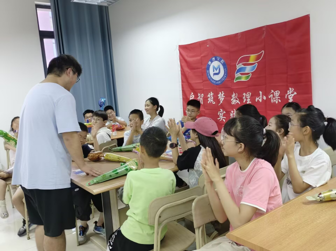 7月1日—8日,bat365在线中国官网登录入口数理学院连续推出两期“启智筑梦·数理小课堂”公益实验课。来自学院教职工家庭和龙湖春天社区的29名小朋友分两批走进活动室,先听故事、再动手实验,与跨越千年的科学巨匠“面对面”。在两天内打卡八大趣味实验,提前点燃今夏最潮“科学热”。