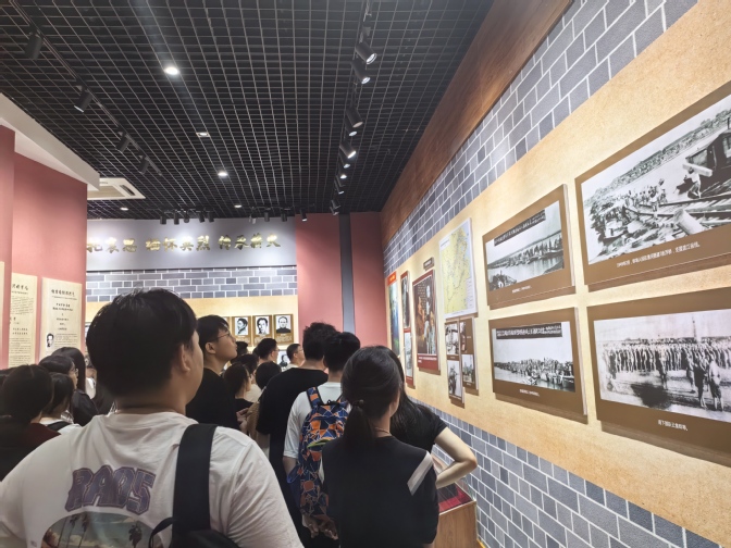 祭奠环节结束后,教师党员带领学生党员、新生团员参观了蚌埠市革命历史陈列馆。通过一幅幅真实的历史图片、一件件沧桑的革命文物,大家深入了解了革命先烈们在艰苦岁月中抛头颅、洒热血的英雄事迹,深刻感悟到今日幸福安宁生活的来之不易。团员青年们在烈士事迹展板前驻足良久,纷纷表示要继承先烈遗志,学好本领报效祖国。