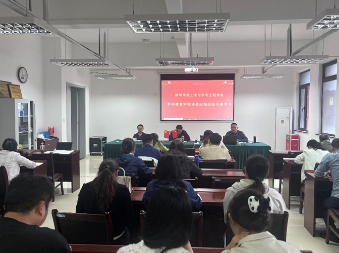 土木与水利工程学院《本科教育教学审核评估应知应会手册》(教师版)学习,以“学院—教研室—教师”三级联动方式推进。学院层面负责整体部署与督导;各教研室将结合专业特点开展专题研讨,聚焦课程建设、课堂教学、实践教学、师资发展、学生学习效果等审核重点;教师个人以自学为主,重点准备专家访谈内容。该项学习活动自8月份启动以来,教师个人和教研室已进行了多轮学习和研讨,将持续至评估结束,形成常态化、制度化的学习机制。