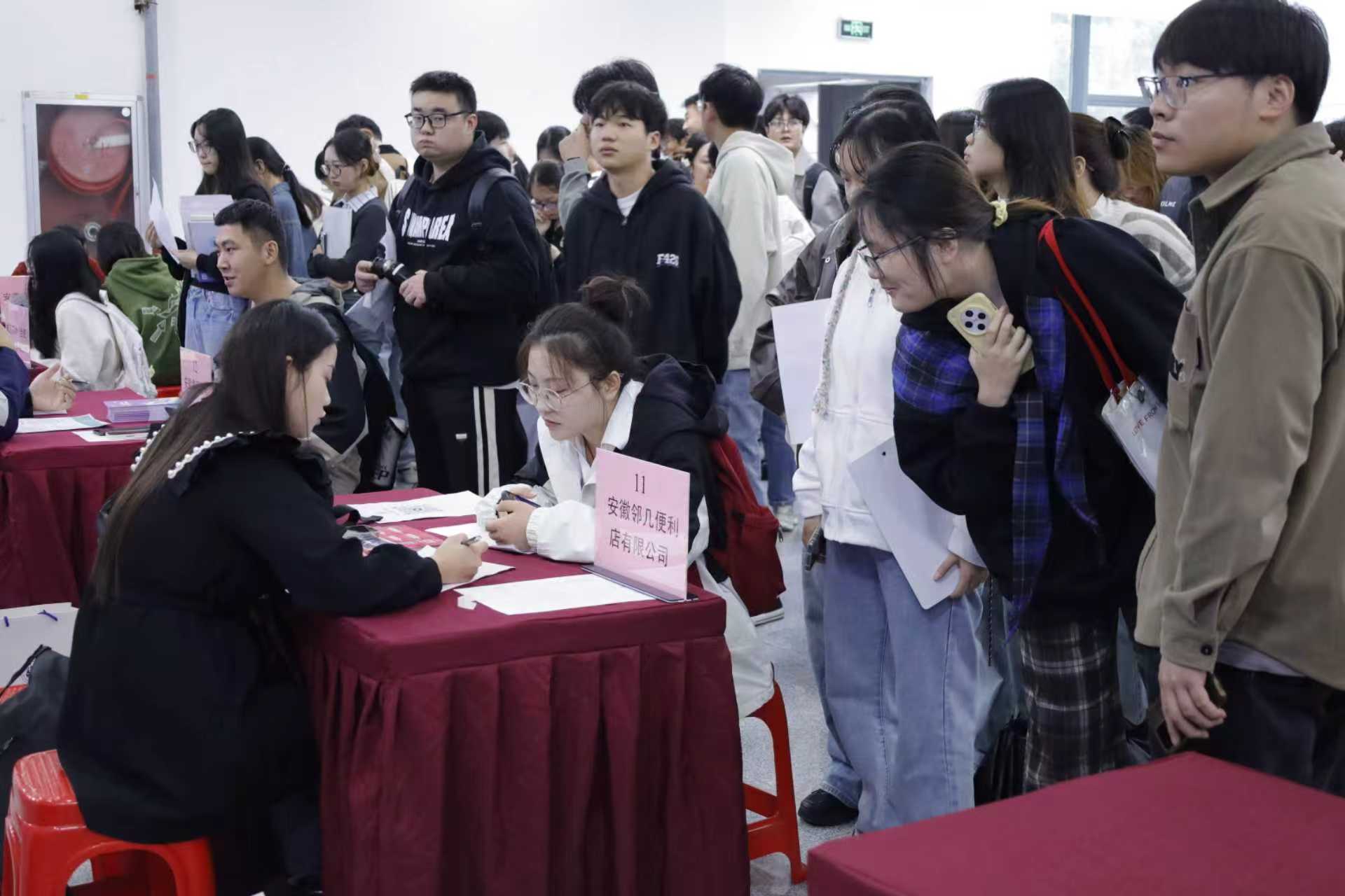 招聘会现场人潮涌动,毕业生们穿梭于各企业展位之间,有的排起长队等待面试,有的手持简历寻找机会,空气中弥漫着紧张与期待的气息。用人单位人事经理面带微笑,耐心解答着毕业生的每一个问题,从岗位职责到发展前景,无不细致讲解。部分用人单位趁热打铁,现场展开初步面试,毕业生们坐姿端正、认真作答,展现出良好的专业素养。据统计,本次招聘会用人单位共计收到简历712份。(撰稿:赵冠军;编辑:马小皊、毛星懿;审核:赵思莉、黄灿)