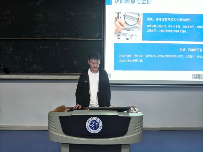 2022级机器人工程西德耀同学以“从心出发,规划未来”为题,系统梳理了大学四年的阶段性目标与实施路径。他提出,大一应注重夯实基础、适应大学生活;大二要积极参与学科竞赛与科研项目,提升综合能力;大三需深耕专业领域,明确升学或就业方向;大四则应做好衔接准备,顺利过渡至人生新阶段。西德耀结合自身屡获竞赛奖项的成长经历,为在座同学描绘出一幅清晰可行的学业发展蓝图。