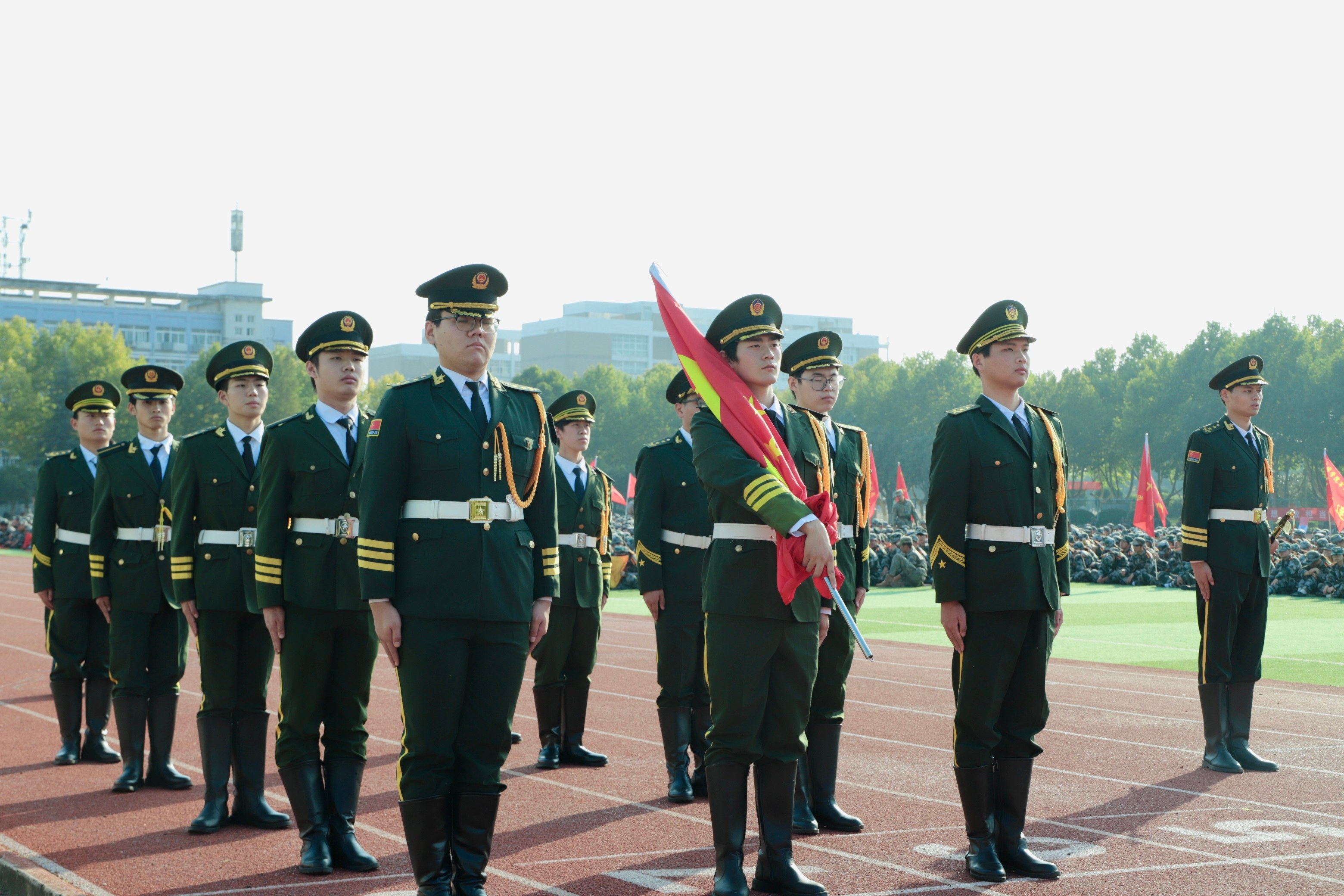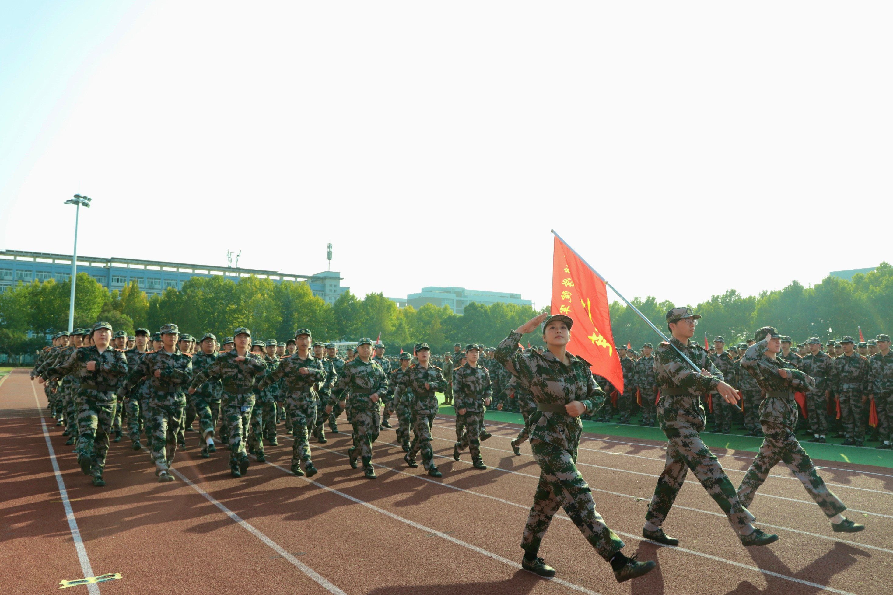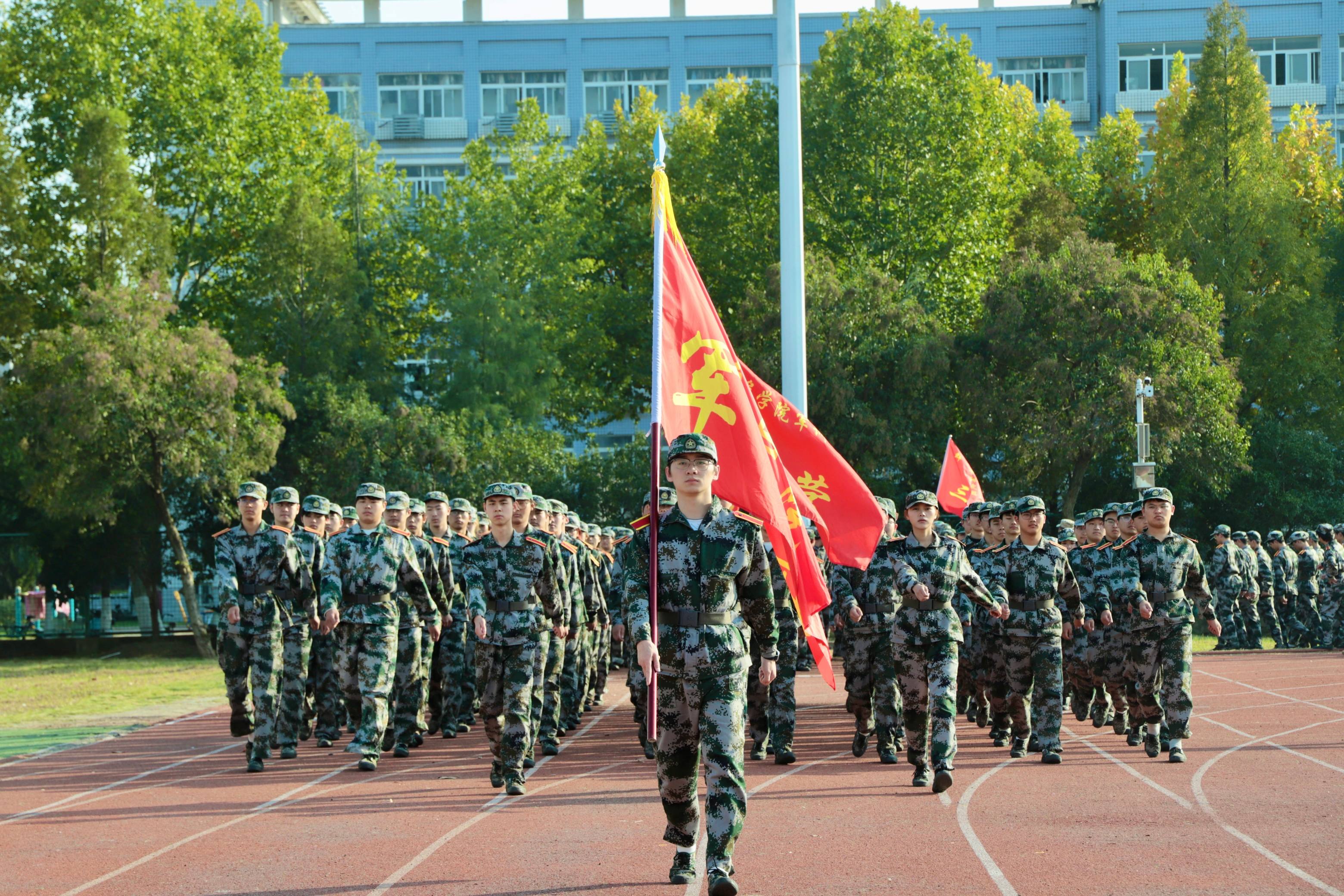 在随后进行的分列式汇报表演中,各营连方阵依次通过主席台。新生们身着整齐的迷彩服,迈着坚定的步伐,喊着嘹亮的口号,展现出焕然一新的精神风貌,赢得了现场师生的阵阵掌声。