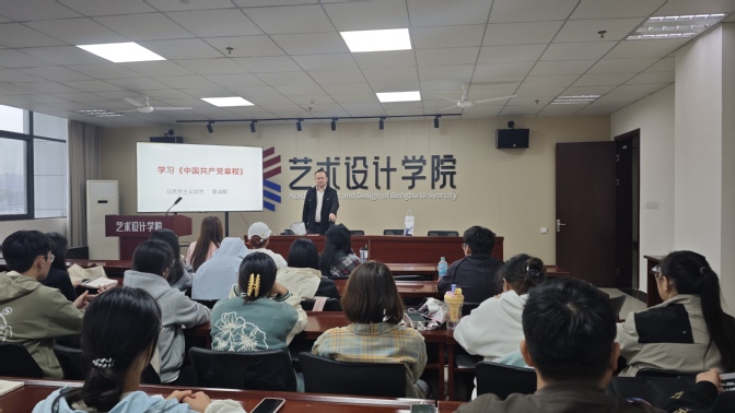 培训期间,学院构建起“领导领学 + 专家导学”的理论教学体系。10 月16 日至 17 日,马克思主义学院思政辅导员袁诚琨聚焦《中国共产党章程》与党的二十届三中全会精神,通过条文解读、案例分析相结合的方式,帮助学员厘清党的制度规范与时代使命。10 月 20 日,学院党委副书记李俊锦深入解读《中国共产党纪律处分条例》,并组织 “党纪学习教育感受” 专题研讨,学员们结合艺术设计专业学习经历,分享了 “以纪律规范创作、以初心践行使命” 的思考。10 月21 日,李珍老师围绕习近平总书记重要讲话精神展开授课,引导学员将个人理想融入民族复兴伟业。