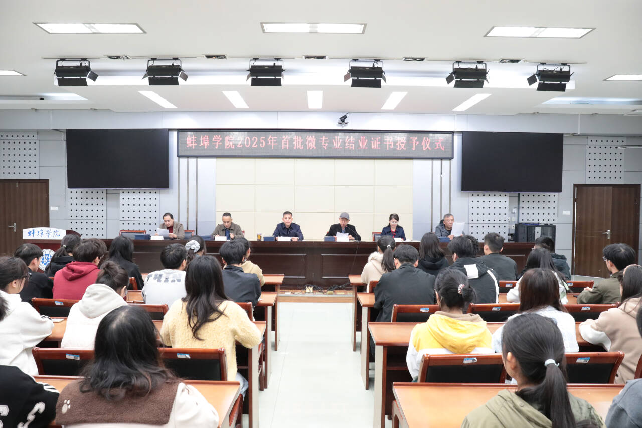 11月5日下午,bat365在线中国官网登录入口2025年首届微专业结业证书授予仪式在视频会议室隆重举行。副校长张尔桂出席仪式。教务处负责人、相关教学单位负责人、微专业教师代表和微专业全体结业学生参加了仪式。