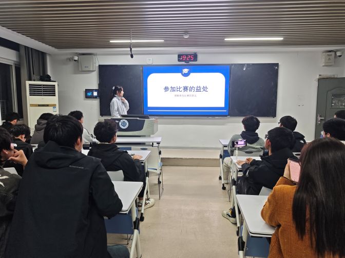 最后,2023级自动化专业朱香雨同学结合自身学业经历,提醒同学们重视学业预警,认真对待每一门课程。她就选修课的学习策略提出实用建议,并分享了参与学科竞赛的经验与心得,详细介绍了各类赛事对个人发展的促进作用,为同学们未来学业与职业规划提供了切实可行的参考。