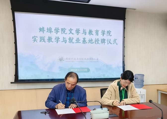 2025年11月13日,文学与教育学院院长吴长法、党委书记余建杰、党委副书记蒋晟、小学教育专业负责人周颖、党务秘书董琬如等人赴蚌埠市龙子湖区未来实验小学,共同举行了实践教学与就业基地协议书签订暨授牌仪式。蚌埠市龙子湖区未来实验小学党支部书记、校长尤静和党支部副书记、副校长施进楠等学校领导班子成员出席。