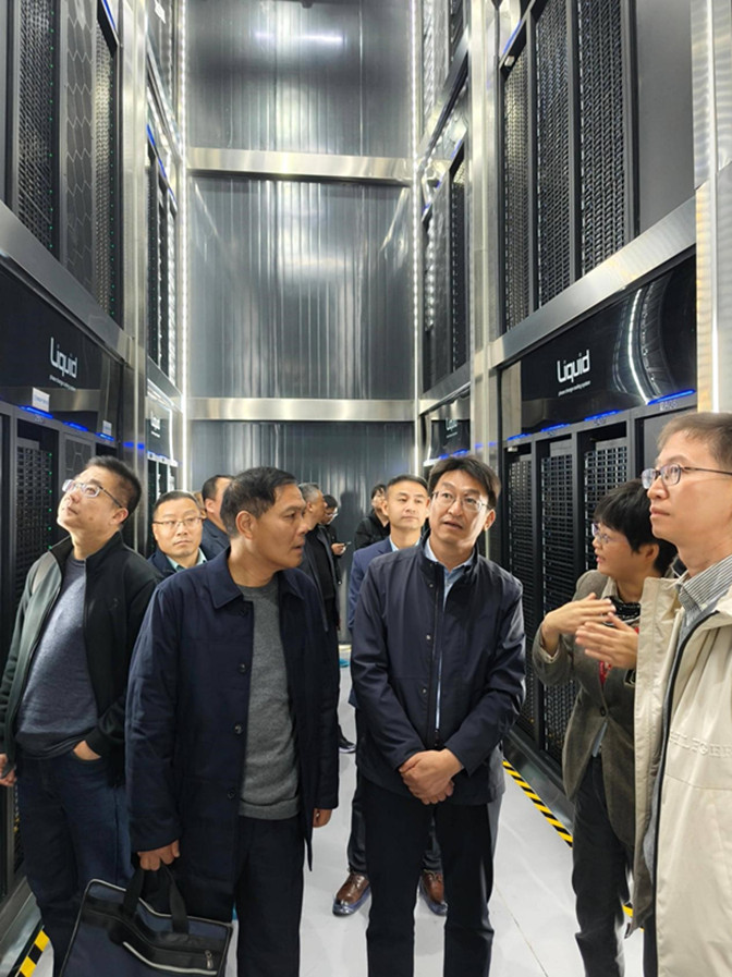 在合肥先进计算中心,张亚新一行实地考察了“巢湖明月”建设运行情况,听取了中心运营团队关于先进计算服务科研、产业及高校算力中心建设案例的汇报,双方就开展学生专业见习、高校算力中心解决方案等进行深入交流。