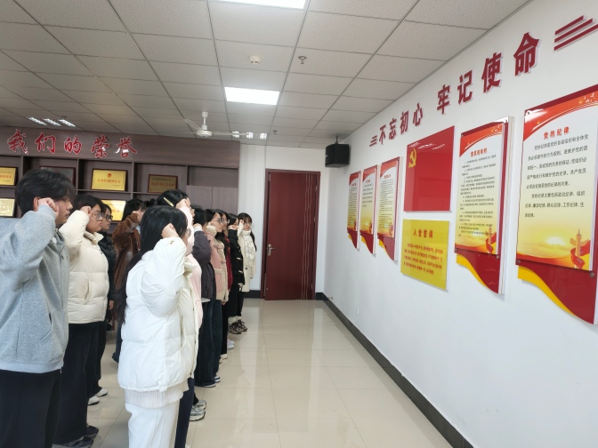 仪式现场董琬如首先为全体预备党员逐一佩戴党员徽章。这枚鲜红的党员徽章,既是党组织的身份标识,更承载着嘱托与使命。随后,27名新党员在鲜红党旗下身姿挺拔、神情严肃,高举右拳,跟随董琬如领誓齐声宣读入党誓词,铿锵誓言回荡会场,凝聚着对党的赤诚与奉献信念。