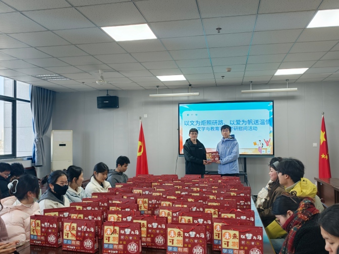 为表达对考研学子的支持,学院精心准备了“暖心加油包”包含尺子、笔等各类实用文具,每一份礼物都承载着学院对学子的殷切期望。毕业班辅导员代表黄玄同老师结合自身工作经验,从备考节奏调整、心态疏导、时间规划等方面为学子们分享实用建议。蒋晟勉励考研学子以笔为剑、以梦为马,保持积极向上的备考心态,沉着应对即将到来的考试,在考研征途上书写属于自己的青春华章。同时学院将持续关注考研学子的备考状态,始终与学子们并肩同行,做好各项保障服务工作。