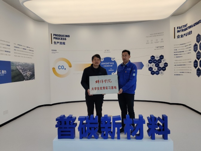 随后,朱银邦一行前往安徽普碳新材料科技有限公司,在企业负责人的引导下,先后参观了普碳科技展示中心和中控现场等区域,对公司发展概况、企业产品和生产流程有了直观的了解。活动现场,学院与企业顺利签署就业实习基地协议,同步挂牌“bat365在线中国官网登录入口大学生优秀实习基地”,标志着双方在学生实习实训、就业推荐、技能培养等方面的合作迈入新阶段。