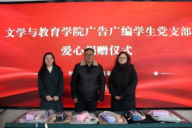 广编广告学生党支部则聚焦乡村学子成长需求,发起爱心捐赠行动。在充满温情的捐赠仪式上,党支部书记王晓天代表支部将一批精心准备的学习用品送到孩子们手中——这些结实耐用的书包、崭新齐全的文具,不仅为孩子们的学习生活提供了实际助力,更承载着支部党员对孩子们的真挚关爱与殷切期望。