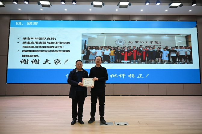 陕西师范大学研究生导师刘永春副研究员以“蛋白质的可控解折叠”为题作报告,报告针对蛋白质材料缺乏类似合成高分子简便加工策略的问题,提出了基于二硫键可控还原与非共价作用屏蔽的蛋白质可控解折叠新策略,建立了相应的构象调控理论体系,实现了蛋白质从天然折叠态向类合成高分子熔融态的精准转变,为蛋白质材料在绿色环保及高端制造等领域的应用莫定了坚实的技术基础。