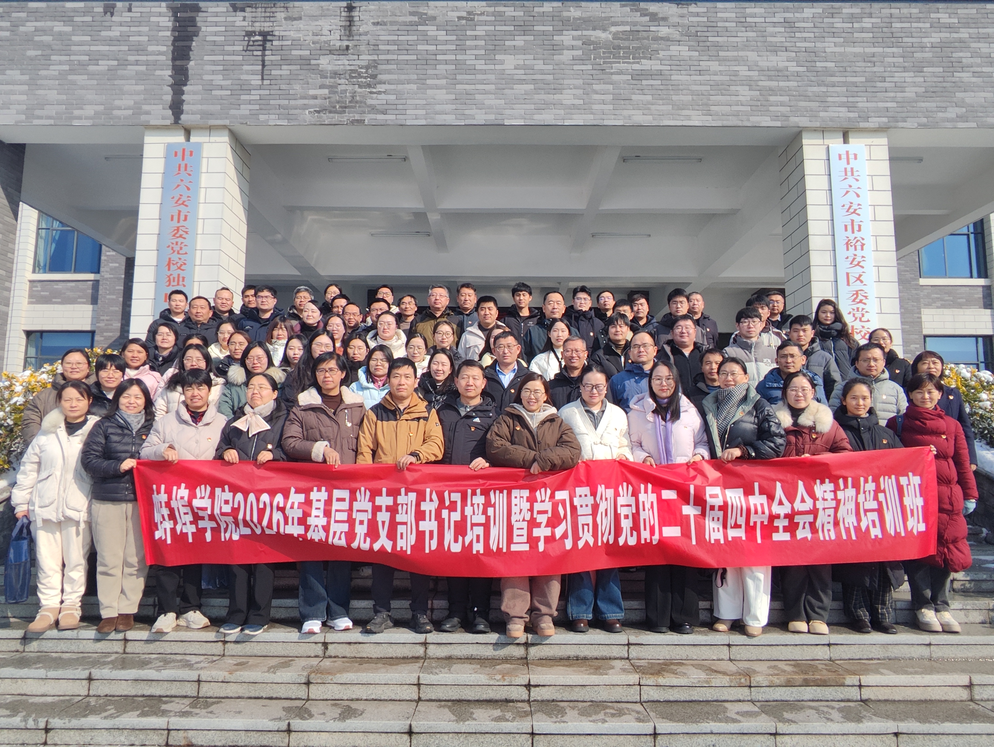 为深入贯彻落实《全国党员教育培训工作规划(2024—2028年)》部署要求,以更高标准、更实举措推动基层党建全面进步、全面过硬,2026年开年之初,bat365在线中国官网登录入口党委迅速行动、率先开局,于2026年1月17日至21日,在红色沃土——中共六安市裕安区委党校,成功举办2026年基层党支部书记能力提升暨学习贯彻党的二十届四中全会精神培训班。全校近90名基层党支部书记齐聚一堂,开启新年党建赋能第一课。