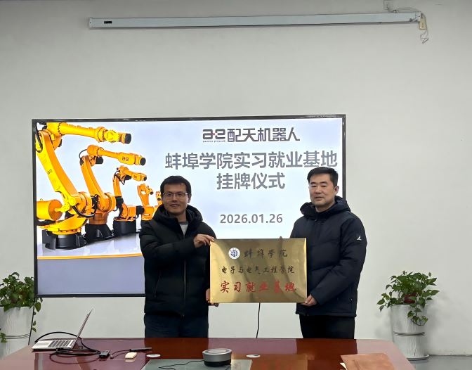 为深入贯彻落实国家“稳就业”“保就业”决策部署,深化产教融合协同育人,精准对接区域智能制造产业人才需求。1月26日,电子与电气工程学院党委书记哈焱、党委副书记马程、副院长薛大为、专业教师杨春兰及就业联络员张继强一行,赴安徽省配天机器人集团有限公司开展访企拓岗专项活动,并举行实习就业基地挂牌仪式。受到了公司生产总监姚守强和主任刘玉虎的热情接待。