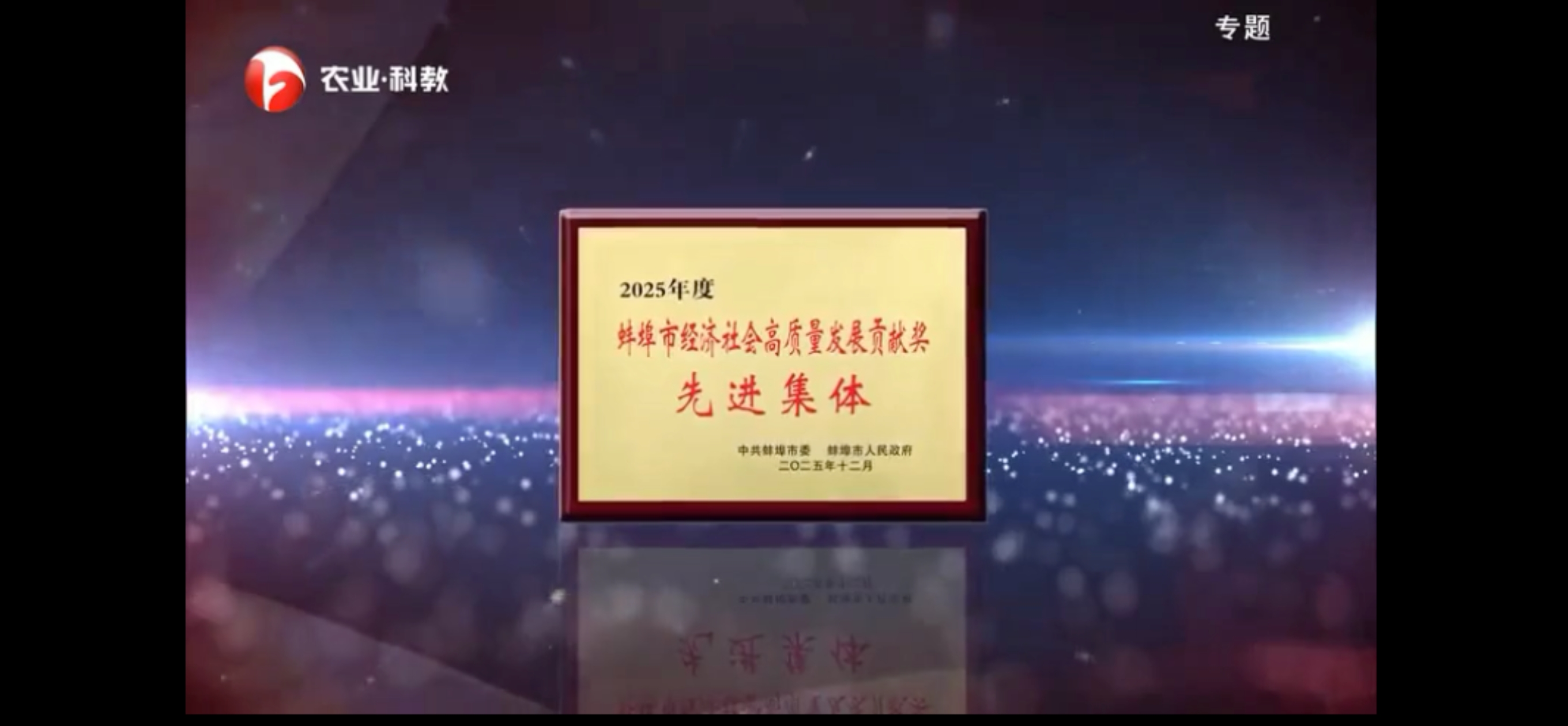 近日,bat365在线中国官网登录入口凭借在“双招双引”、服务地方产业发展中的突出成效,荣获2025年度“双招双引”“蚌埠市经济社会高质量发展贡献奖先进集体”称号,相关报道于2月4日至5日在安徽电视公共频道、农业·科教频道播出,安徽网络电视台同步推送,向全省观众展现地方高校赋能区域高质量发展的蚌院担当。