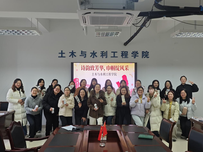 芳菲三月,巾帼绽风采。为庆祝第116个“三八”国际劳动妇女节,3月4日下午,土木与水利工程学院分工会在学院418会议室举办“诗韵致芳华,巾帼绽风采”主题庆祝活动。学院党委书记张兆亮、院长戚晓明、分工会主席宋丹丹与学院全体女教职工齐聚一堂,共庆佳节、共话芳华。