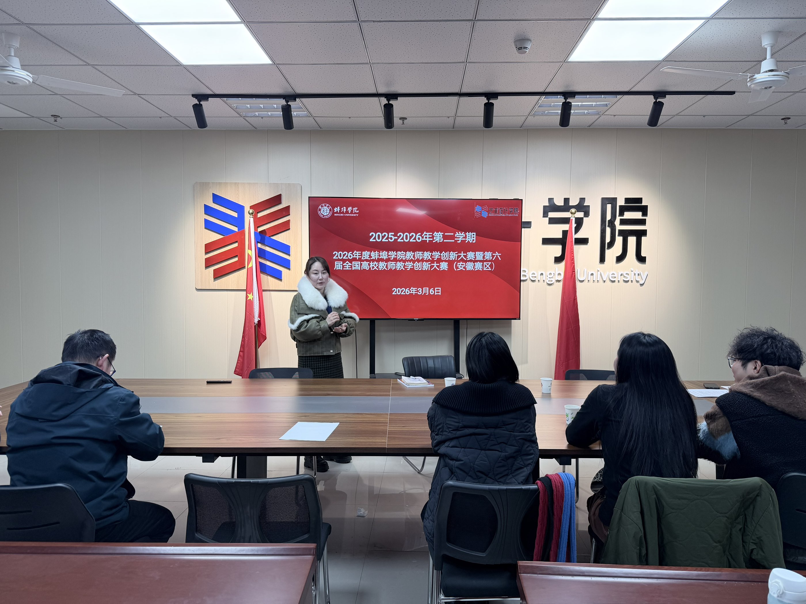 为推动教学创新,提升教师教学能力和人才培养质量,备战“第六届全国高校教师教学创新大赛”,艺术设计学院于2026年3月6日下午2:30在F楼712会议室举办教创赛学院选拔赛。参赛教师、学院质量监控小组成员参加活动,院长胡飞作工作指导,副院长王磊主持会议。