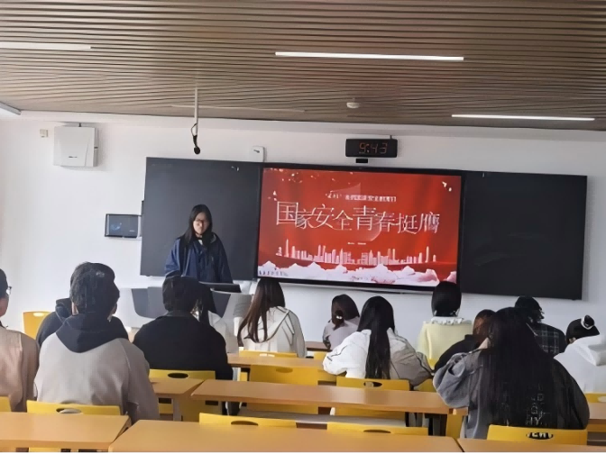 除主题升旗仪式外,学院各团支部同步召开国家安全教育主题班会。班会上,各班团支书带领同学们系统学习总体国家安全观核心要义,围绕政治安全、网络安全、文化安全、生态安全等重点领域展开讲解,结合典型案例剖析危害国家安全的行为表现,引导大家认清国家安全形势、增强防范意识。同学们通过观看教育短片、交流学习心得、分享身边案例等形式,深入探讨新时代青年如何维护国家安全,号召大家将维护国家安全内化于心、外化于行,把爱国情、强国志、报国行融入日常学习生活,以实际行动守护国家安全,自觉抵制不良信息,严守安全底线,主动担当维护国家安全的青春责任。