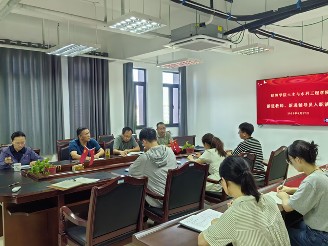 为持续推进师德师风建设,弘扬教育家精神,筑牢立德树人根基,提升新入职教师教书育人能力,迈好职业生涯第一步,扣好廉洁从教第一粒扣子。8月27日,土木与水利工程学院开展2025年新入职教师集体廉政谈话和入职培训会。学院全体党政领导班子成员和7名新入职博士及辅导员参加了会议,会议由院长戚晓明主持。谈话会上,副院长朱兰保系统介绍了学院教学管理、学科布局与科研支持政策,鼓励新教师将个人成长与学院发展紧密结合,加强制度学习,积极履行社会服务职责。党委副书记芦永萍希望新教师严守工作纪律,坚决不越纪律红线,尽快融入学院环境。院长戚晓明要求,新教师要聚焦教书育人主业,快速实现身份转变,厚植家国情怀,积极投身科研,严守学术规范。学院党委书记张兆亮强调,新教师要强化自身政治觉悟,提高政治素养,在工作和生活中做到严格遵守教师职业道德规范,严格执行《新时代高校教师职业行为十项准则》要求,廉洁从教,以公平、公正的态度对待每一位学生,以德立身、以德立学、以德施教、以德育德,做“四有”好老师。集体廉政谈话会后,学院对新入职教师进行了入职培训,培训涵盖教学、科研、管理及职业发展等多方面内容。朱圣男博士介绍了日常行政规范