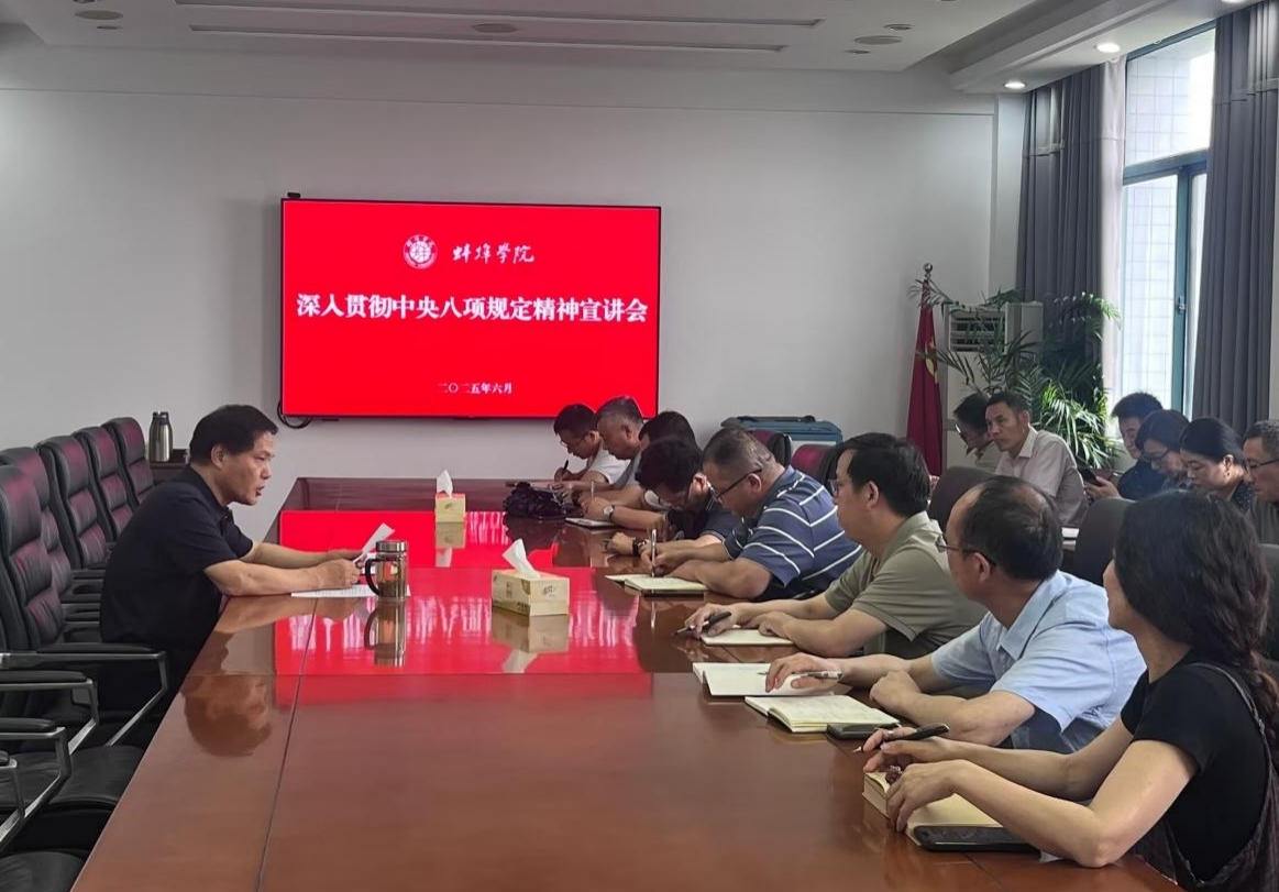 为贯彻落实党中央关于开展深入贯彻中央八项规定精神学习教育的部署要求,进一步推动中央八项规定精神在高校落地生根,营造风清气正的校园环境,6月19日下午,党委委员、副院长郭有强主持召开深入贯彻中央八项规定精神宣讲会,分管部门及联系学院处级干部,基建处、后勤管理处科级以上干部参加。