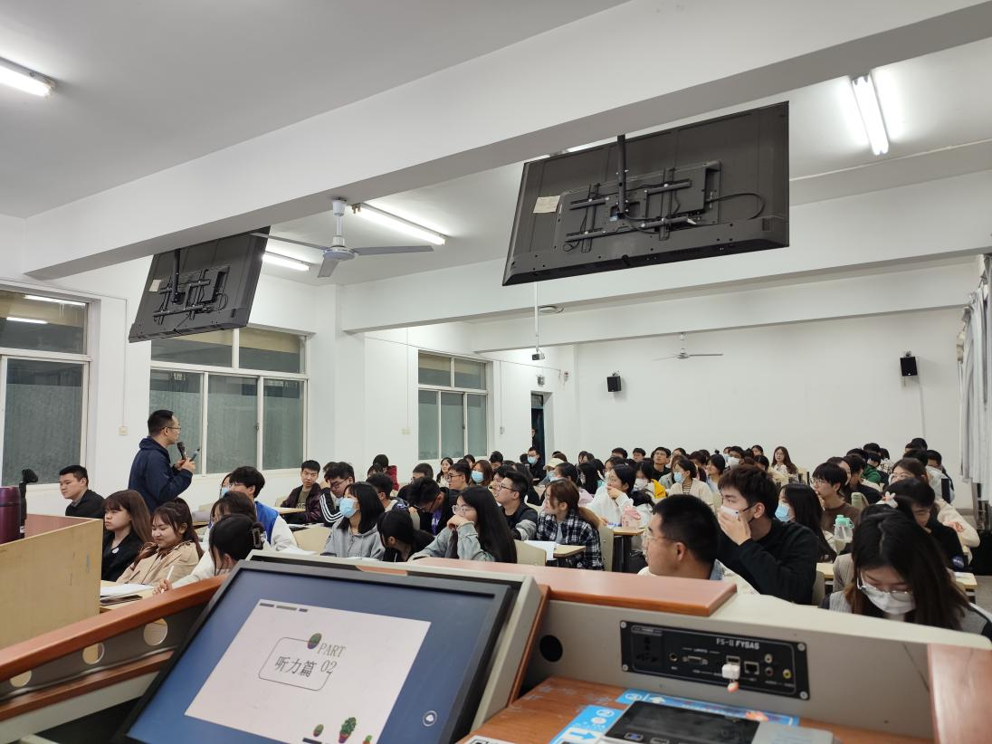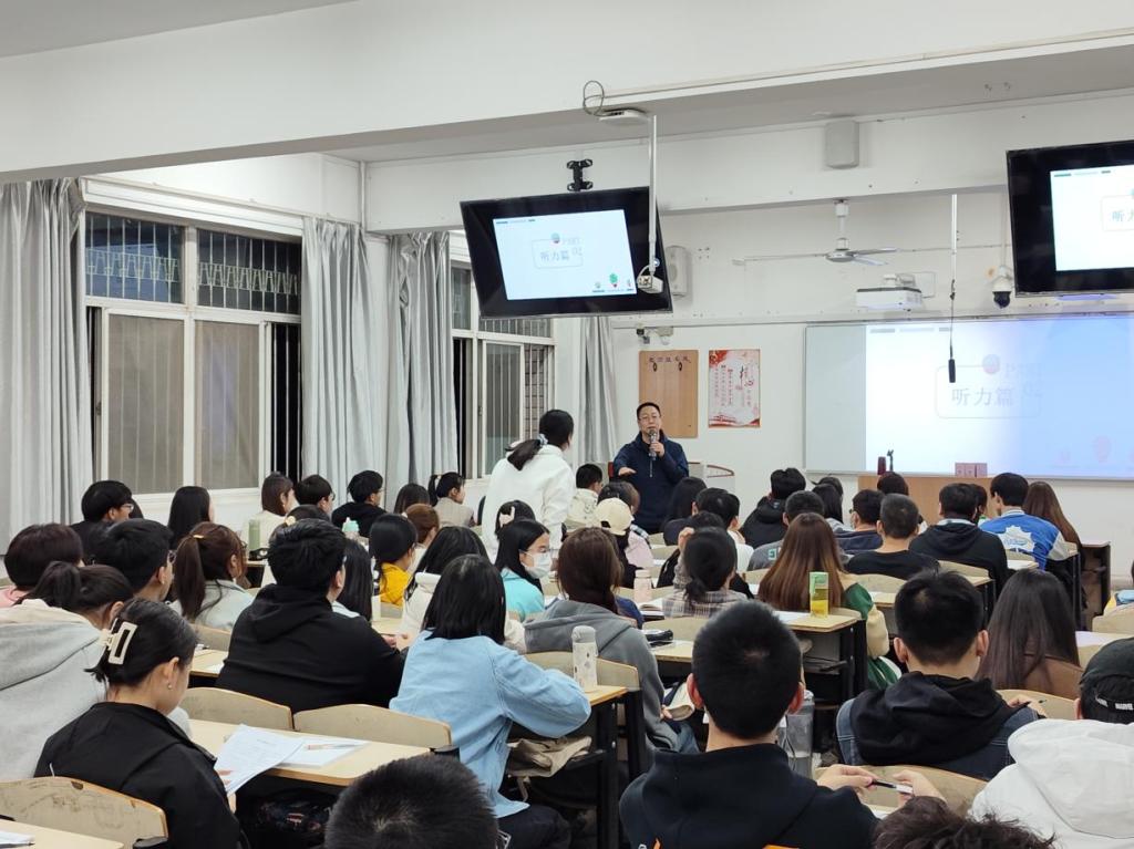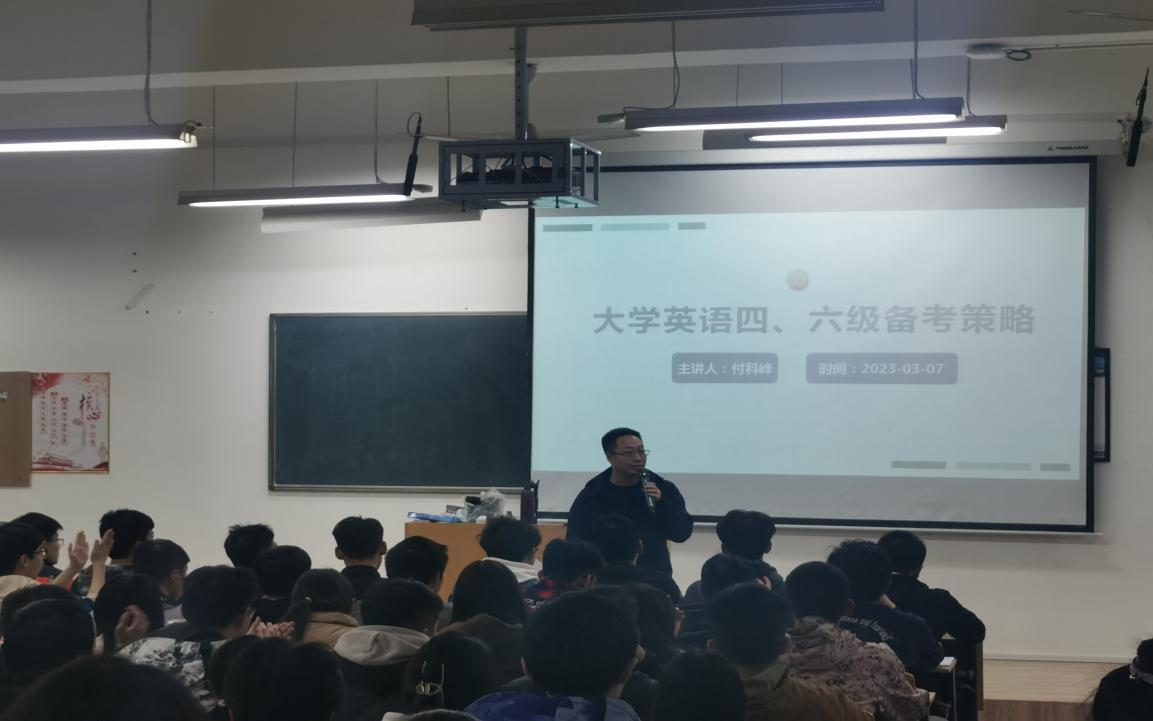 3月8日晚,开云kaiyun体育举办了英语学习规划讲座暨四六级考试动员大会,外语培训中心主任付科峰应邀作了题为“大学英语四、六级备考策略”的专题讲座。全校近600余名学生参与聆听,讲座取得了很好的反响。