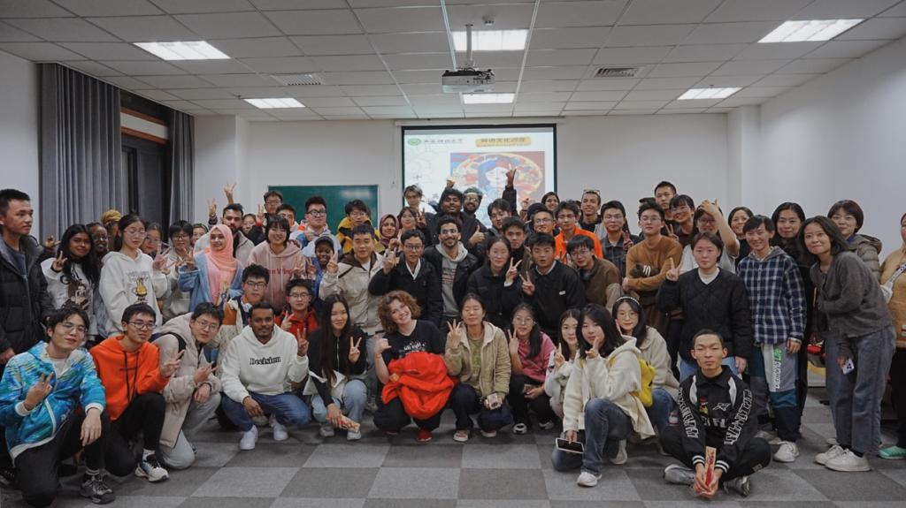 为增进对“一带一路”倡议内涵的了解、促进文化交流,11月22日晚,在临潼校区骊山校园图书馆沙龙区,开云kaiyun体育联合国际交流与合作处共同举办“十年丝路·再启新程”系列英语文化沙龙活动(第二期),学院大英一部主任党婉青、副主任骆一佳、闫书箐、刘小爱、叶心爱、大英二部管延红、杨丽娜、英语系杨宁、于凡、国际汉语教研室郭旭东等教师,全校各学院英语爱好者与来自孟加拉国、哈萨克斯坦、巴基斯坦、摩洛哥等国家的国际留学生参加了活动,本次活动的主题为“一带一路·文化之旅”。