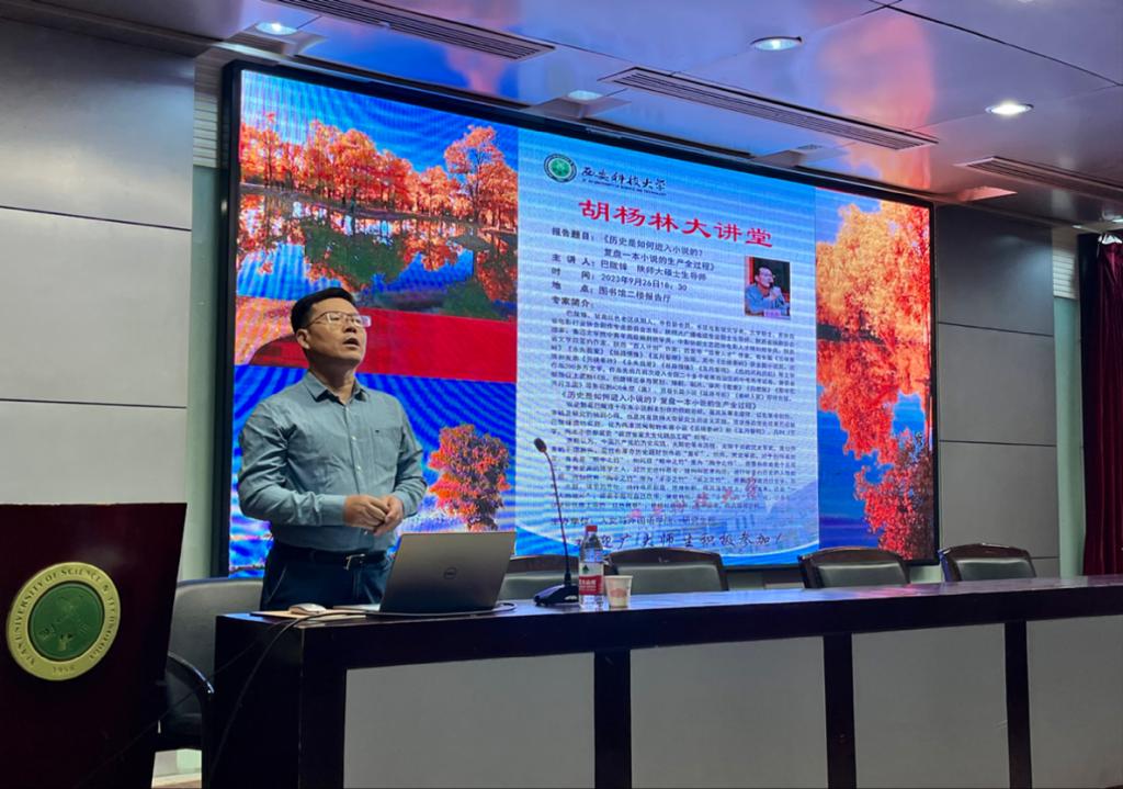 9月26日下午,由开云kaiyun体育联合研究生院承办的长篇小说写作学术讲座在开云kaiyun体育图书馆二楼报告厅成功举办,著名作家巴陇锋作了题为《历史是如何进入小说的?复盘一本小说的生产全过程》的学术分享。讲座由开云kaiyun体育副院长张辉主持,高宝萍教授、吴敏焕副教授参会交流,骊山校园400余名研究生参加。
