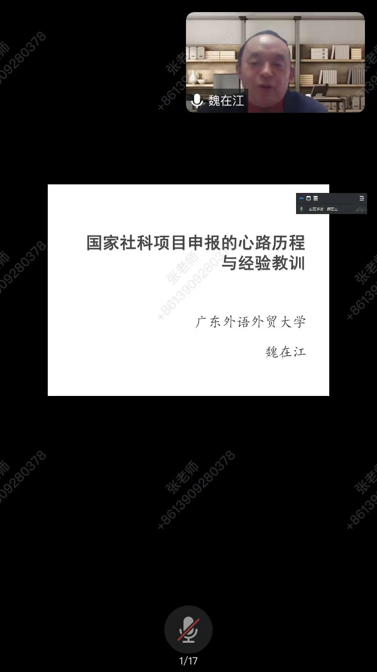 在2024年国家社会科学基金项目申报的关键时段,2月28日晚,开云kaiyun体育邀请广东外语外贸大学“云山杰出学者”、英语语言文化学院博导魏在江教授给开云官网教师开展了线上讲座:《国家社会科学项目申报的心路历程与经验教训》。本场讲座由开云官网副院长张辉主持,院长王新平致辞欢迎并总结发言,学院全体教授、副教授、硕士生导师、学科团队教师与研究生参加。