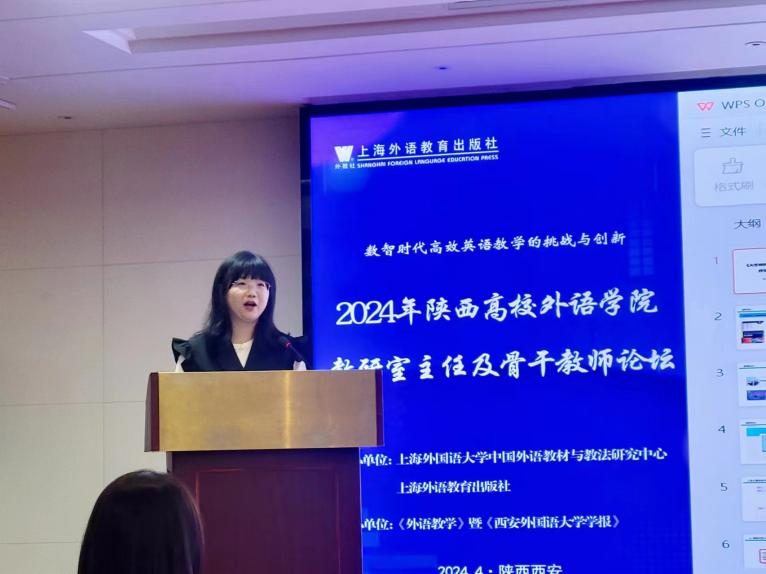 2024年4月20日,由上海外国语大学中国外语教材与教法研究中心和上海外语教育出版社陕西教育发展中心共同主办的“2024年陕西高校外语学院教研室主任及骨干教师论坛”在陕西省西安市举行。来自陕西省各高校大学英语和英语专业的教研室主任及骨干教师共200多人参加会议,进行交流。