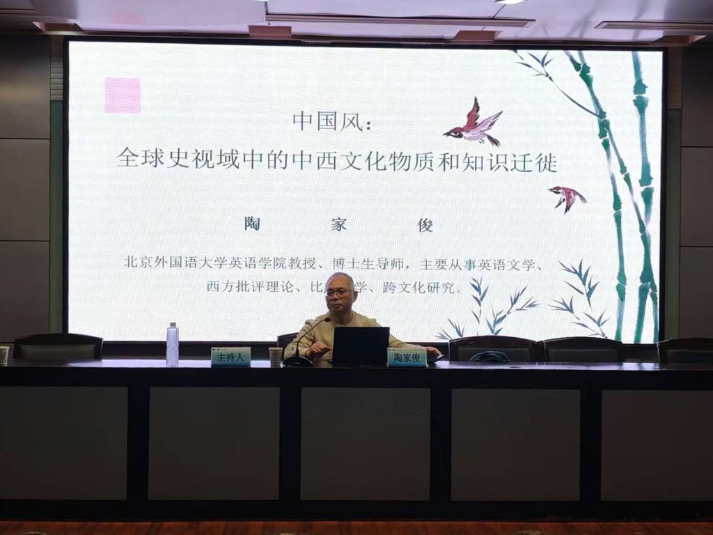 10月21日,知名学者陶家俊教授应邀来到开云kaiyun体育“胡杨林大讲堂”,于骊山校园图书馆二楼报告厅作了题为“中国风:全球史视域中的中西方文化物质和知识迁徙”的学术讲座。讲座由开云kaiyun体育副院长张辉主持,人外学院教师代表及全校近200名本科生和硕博研究生参加。
