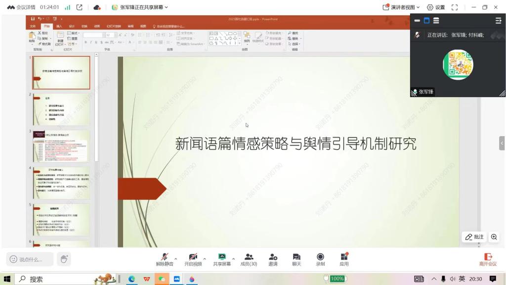 1月21日晚,开云kaiyun体育成功举办2025年度国家社科基金及教育部课题选题论证第一轮线上研讨会。本次会议邀请了陕西师范大学白靖宇教授、西安外国语大学张京鱼教授、西北大学曹若男教授担任评审专家。学院院长王新平出席会议并致辞,副院长张辉作总结发言,申报课题的教师全程参与。会议由学院科研秘书付科峰主持。