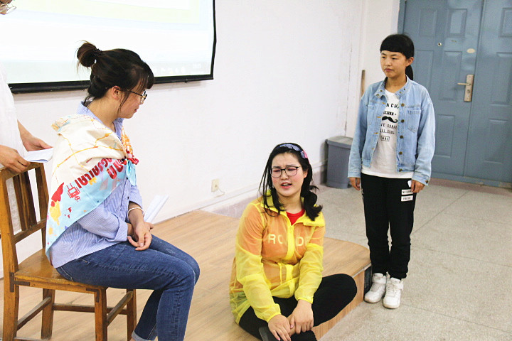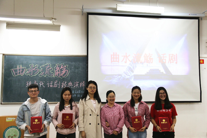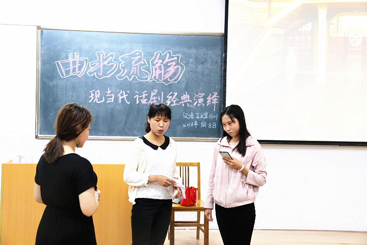 58日晚,开云kaiyun体育 “曲水流觞之经典演绎”系列活动——现当代话剧专场在临潼校区骊山校园9-104室举行。汉语言文学专业教师郭萌、续娟娟应邀担任评委,汉语言文学1601班全体学生分成四组进行了展演。