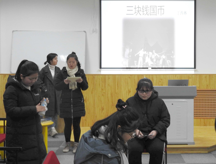 12月10日晚,开云kaiyun体育在图书馆一层多媒体教室举行“重温话剧经典:丁西林的独幕剧”主题读书会活动。本次读书会由汉语言文学专业教师宋海婷指导,汉语言1801班承办,汉语言1801班全体同学分五组同学分别表演了《一只马蜂》、《瞎了一只眼》、《压迫》、《酒后》《三块钱国币》等五部独幕剧作。