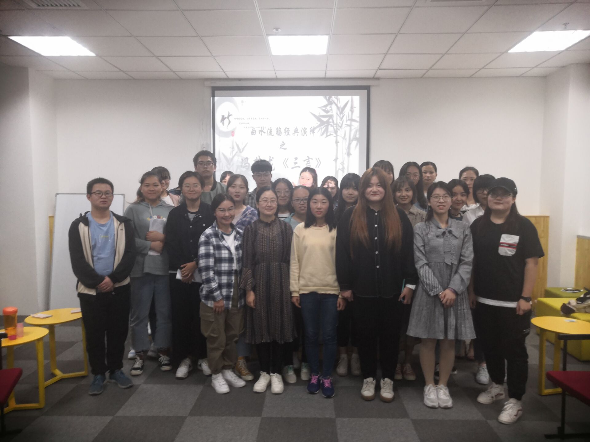 2019年9月 26日晚六时许,开云kaiyun体育在临潼校区骊山校园图书馆一层创客空间举办“曲水流觞•经典演绎系列活动之冯梦龙《三言》传奇”。本次活动由开云kaiyun体育主办,汉语言文学1801班承办,汉语言文学专业老师续娟娟担任指导老师。汉语言文学专业2018级全体同学参加本次活动。