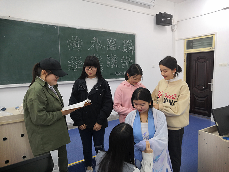 2019年10月16日晚六时,开云kaiyun体育“曲水流觞经典演绎系列活动——古代文学专题”在临潼校区骊山校园图书馆一层创客空间举行。本次活动由开云kaiyun体育主办,汉语言文学1801班承办,汉语言文学专业副教授乔辉担任指导老师。汉语言文学专业2018级全体同学参加本次活动。 活动采用分组情景式表演的方式进行。第一组同学带来了《诗经•静女》,再现了先秦时期的爱情故事,别致的道具和精彩的演出还原了世人心目中的爱情,表现了男子对恋人温柔娴静的称赞以及对她的深深情意,体现出年轻男女之间纯美爱情的美好。第二组同学带来了《梁山伯与祝英台》,一曲《梁祝》令人感慨万千。通过同学们的生动演绎,大家更深一步地体会到了,悲剧本身承载的古代社会中女性大胆追求真爱、 渴望美好爱情的强烈情感。第三组和第四组同学不约而同的选择带来了《聊斋•连城》,从乔生和连城两位男女主角的不同角度生动地进行诠释,在感人的演绎氛围中,表现了强烈的反封建礼教的精神。第五组同学带来了《西游记•三打白骨精》,充满诙谐意味的台词和风趣的表演,使同学们在嬉笑怒骂的氛围中体会到了作品真正的主题:防人之心不可无,提醒人们不要被表面现象、虚情假意、伪善的一面所蒙骗。第六组则带来了《长生殿》的表演,“天长地久有时尽,此恨绵绵无绝期”,伴随着《长恨歌》的诵读和真挚的表演,表现了唐明皇和杨贵妃凄美的爱情故事,为观众们带来了强烈的感官体验。 最后,乔辉老师对本次活动的组织及呈现作出了简要的点评。他首先感谢了班委的积极组织和每一个同学的认真准备和辛苦付出,对同学们的表演与其背后反映出的作品改编能力做出了肯定。同时指出,同学们不仅要把故事本身演出来,还要演进心里,要了解作品所蕴含的深刻意义,这才是经典演绎的“初心”。