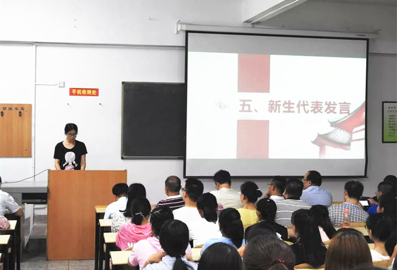 师新民最后讲话,表达了对2018级新同学的热烈欢迎和祝贺,并简要介绍了学校发展概况和学院师资队伍、科学研究、学生工作等相关内容,希望大家在今后处理好通识教育与专业教育、课内教育与课外教育、共性教育与个性教育等三个关系,多读书、懂感情、重集体、爱国家,丰富大学生活,铸就人格魅力,培养思辨能力和批判精神,强化独立见解和解决问题的能力。