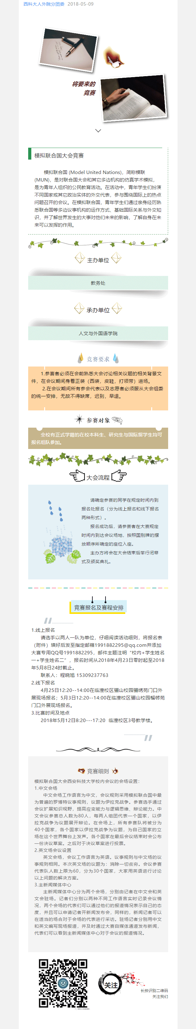 关于举办第三届“西科杯”模拟 联合国大会竞赛的通知